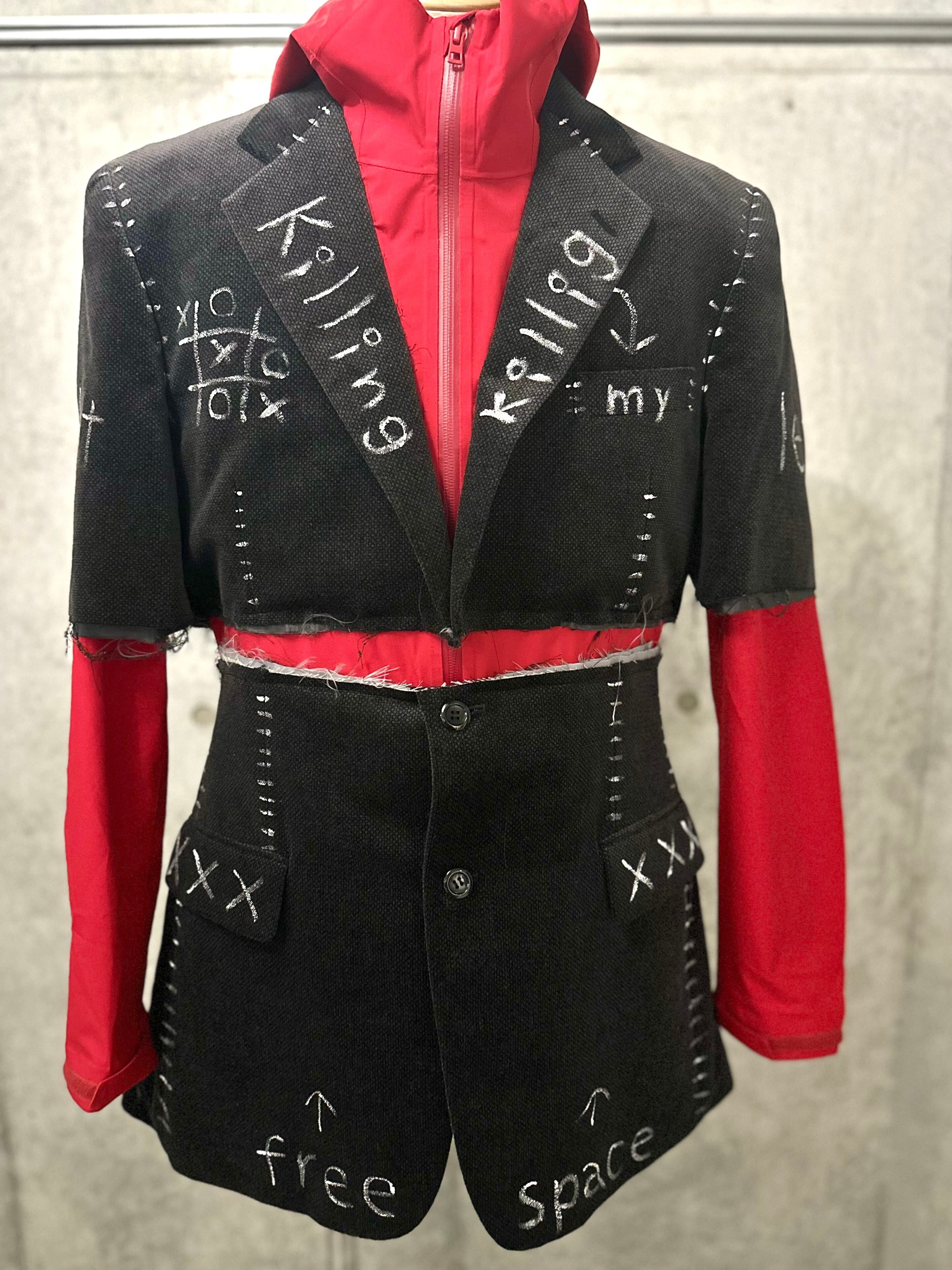ノリと勢いでテーラードジャケットを半分にぶった斬ったことで完成した。
