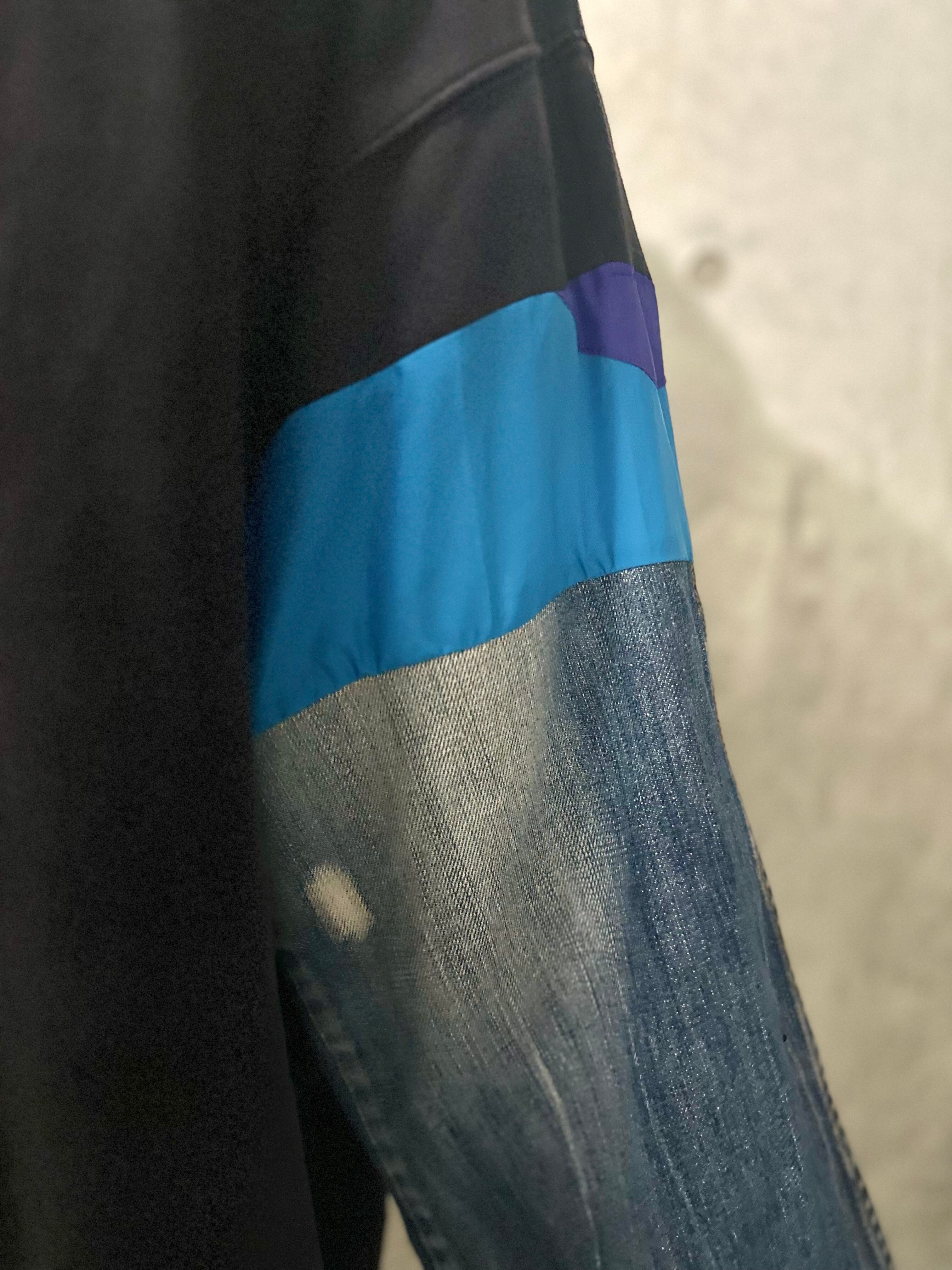 なんなら今回はデニムだけでなくナイロンジャケットの素材も使って一味違うリメイクフーディーに。