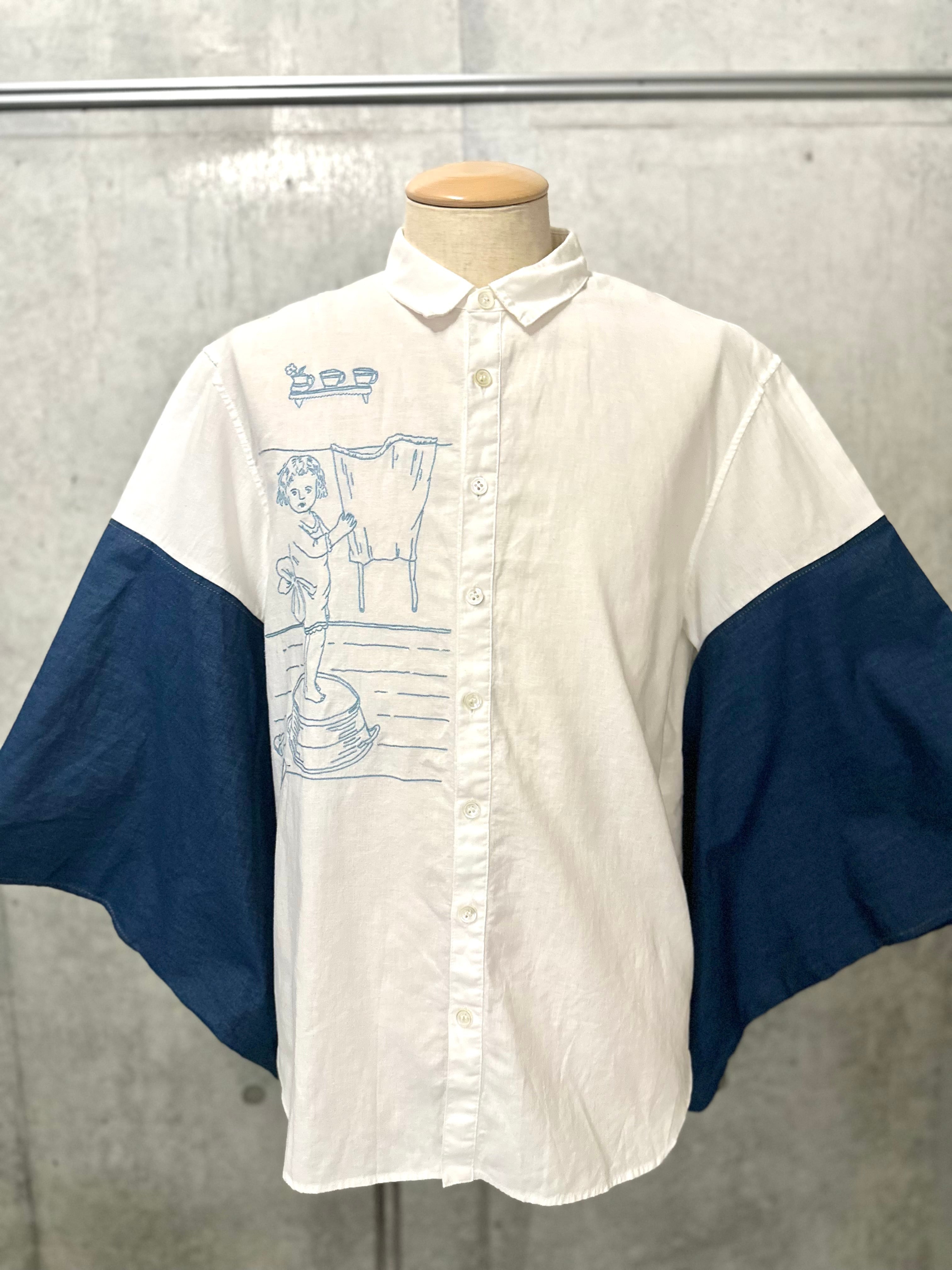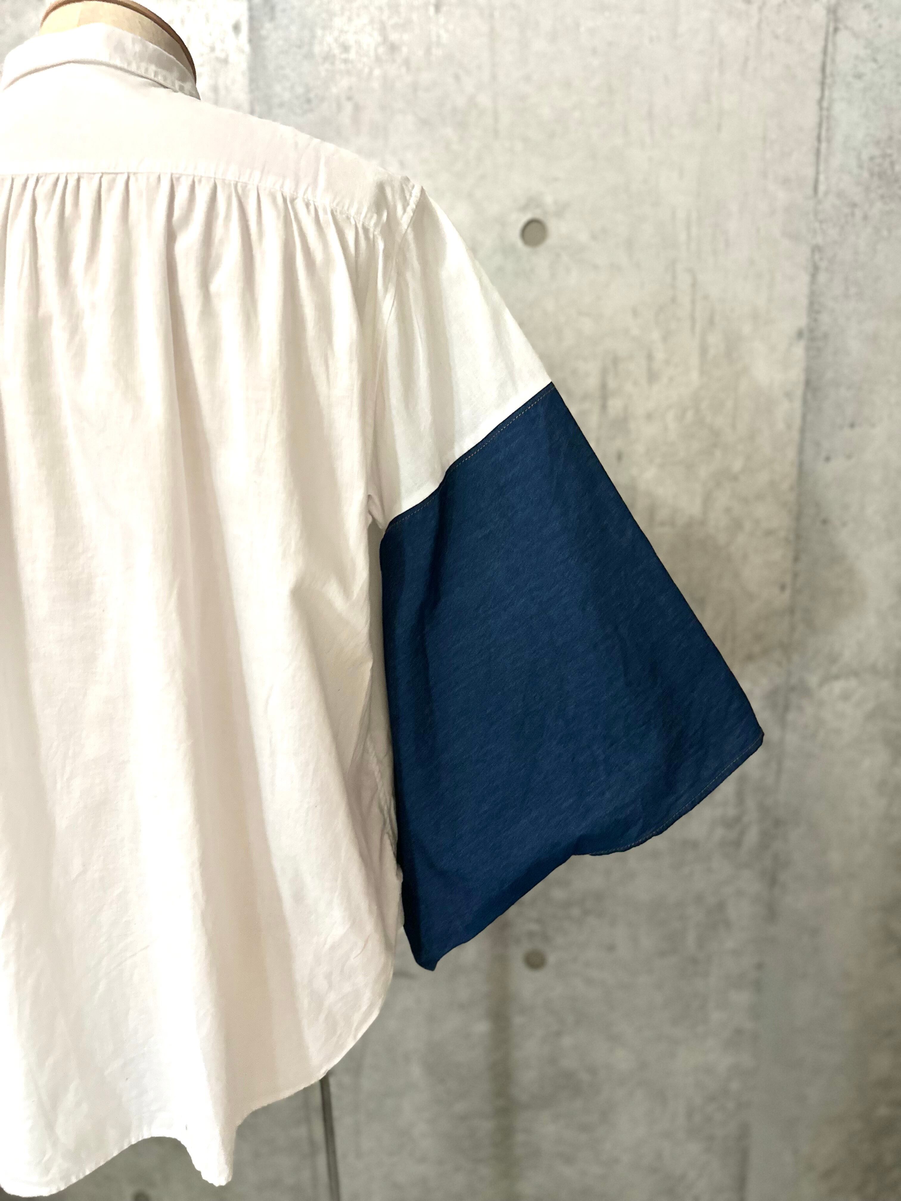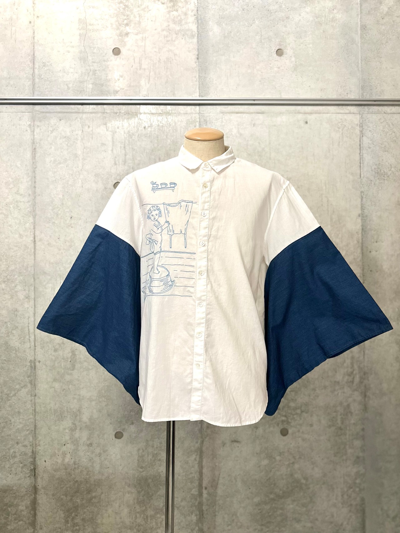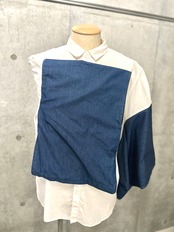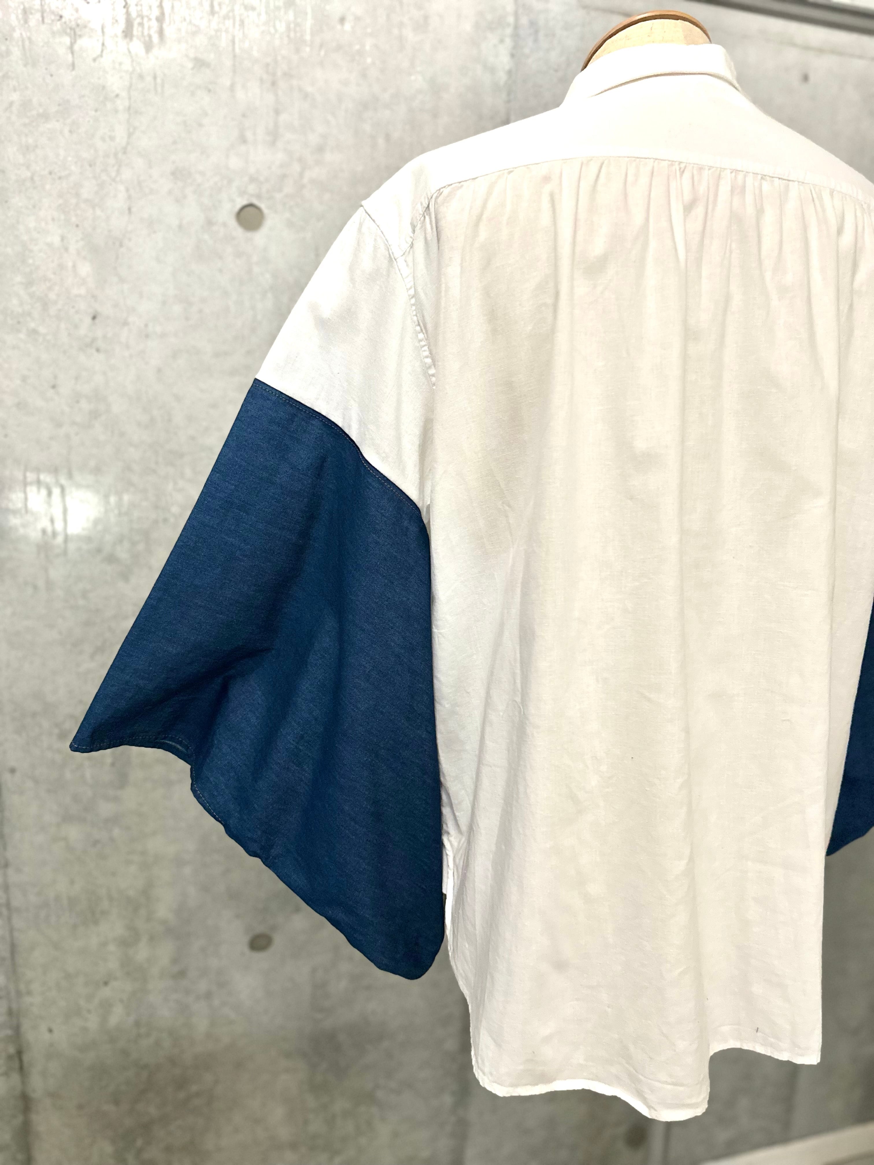 単衣のデニム着物と袖と綿麻のシャツの袖を繋げてみたら「あら可愛い〜」な仕上がりに。