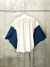 着物とか浴衣って暑い〜ってなりがちらしいけどボディは麻だから涼しいし袖のデニムも薄めなので当然涼しい、総じて涼しげな風合いも魅力。