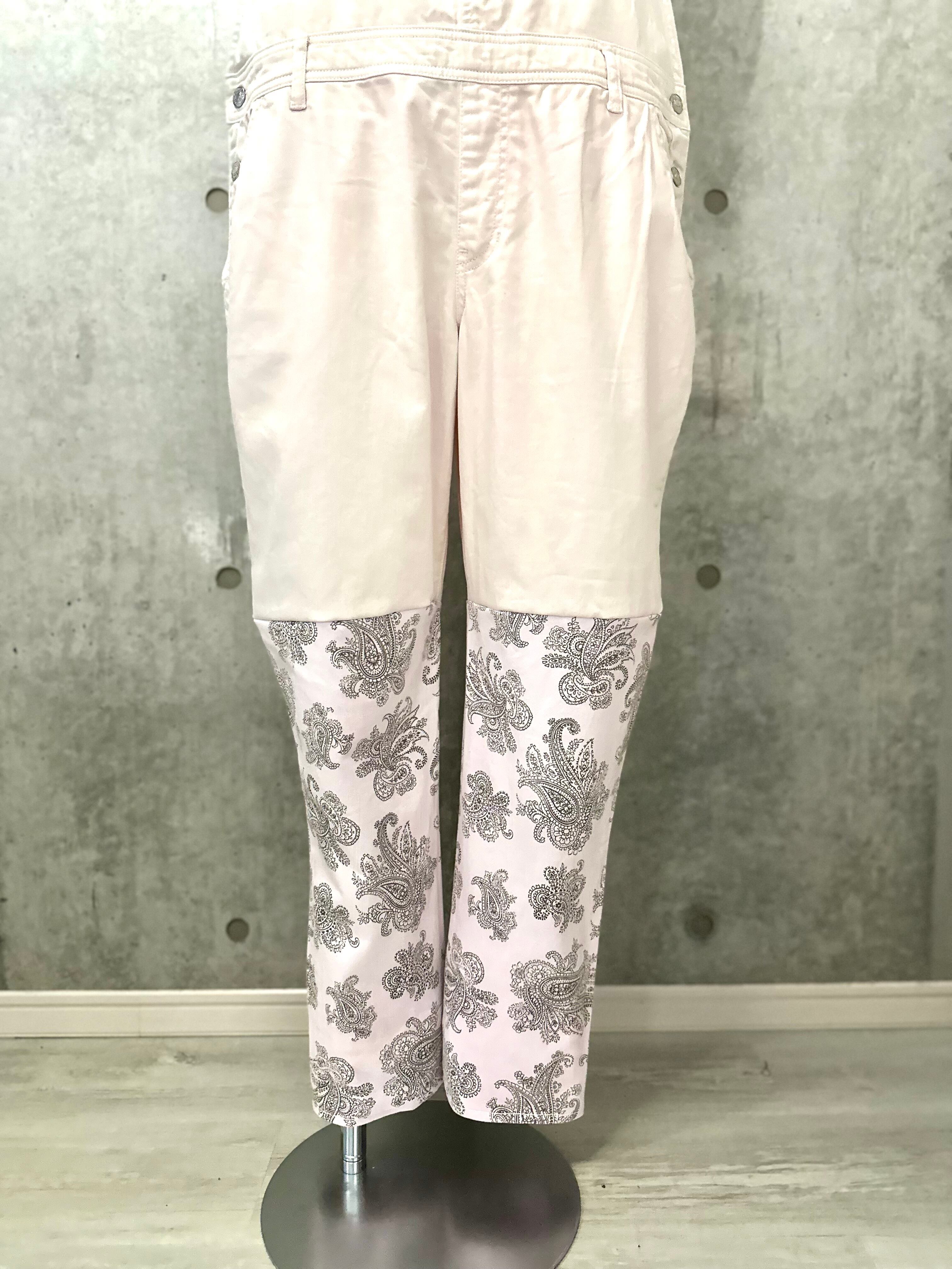 洗濯してたらなぜかピンクに染まってしまい履かなくなってしまったペイズリー柄の儚いパンツを「待ってました」と言わんばかりの同系色なピンク色のデニムオーバーオールとドッキング。