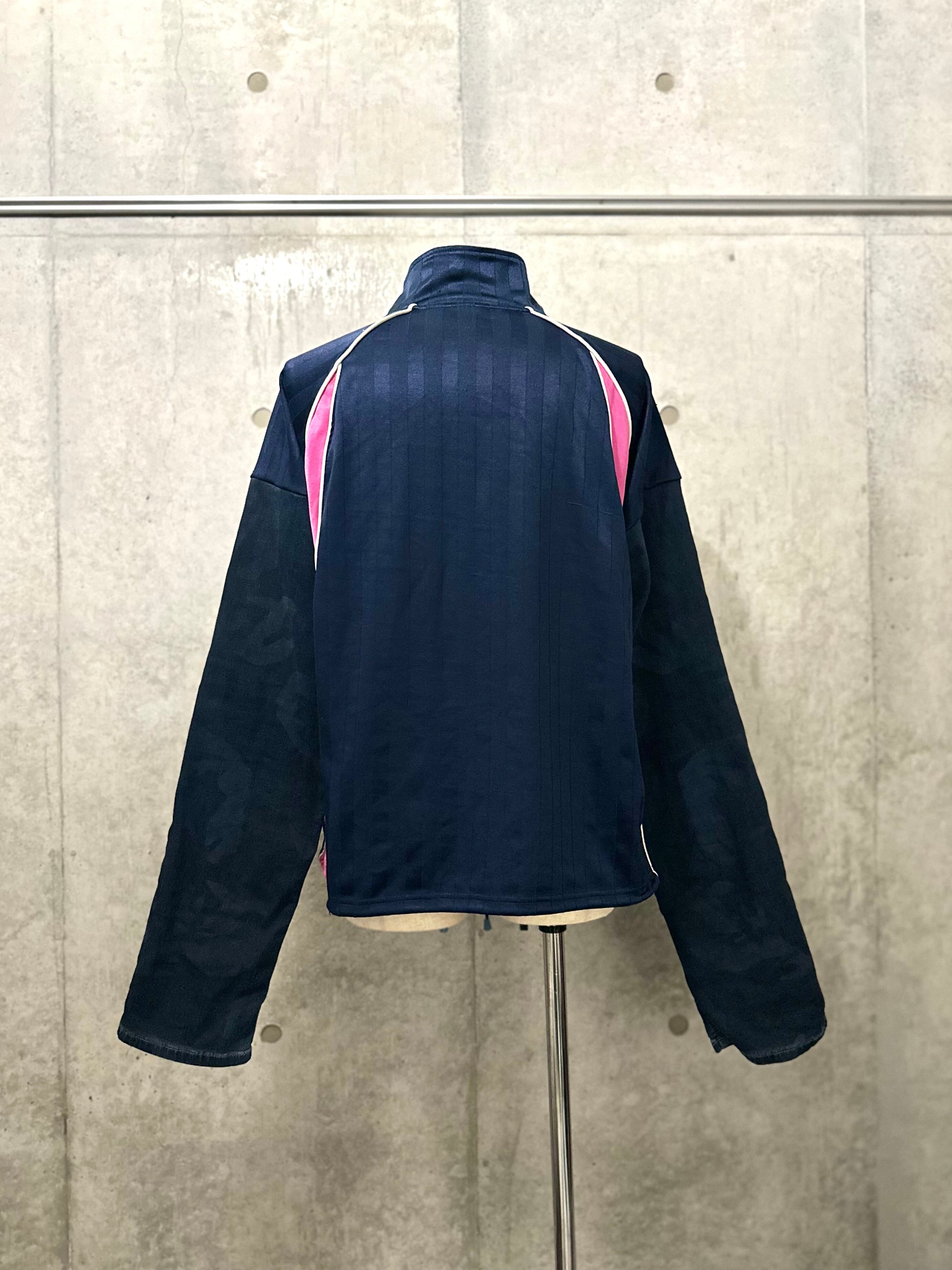 ただのジャージも腕がデニムになるだけでラフにオシャレ着へと消化できるし、ネイビーのジャージにはピンクの差し色があるだけでだいぶ可愛い。