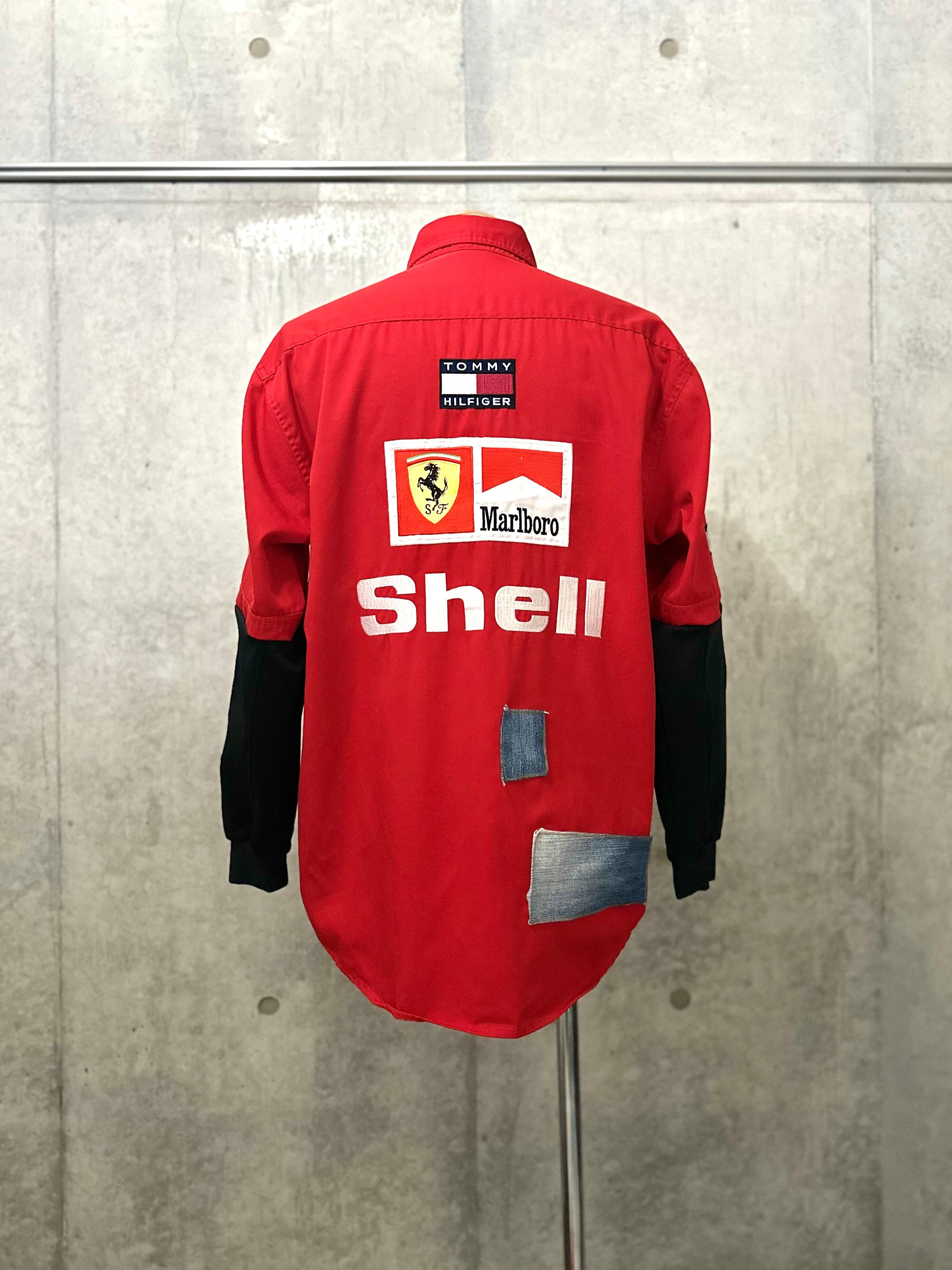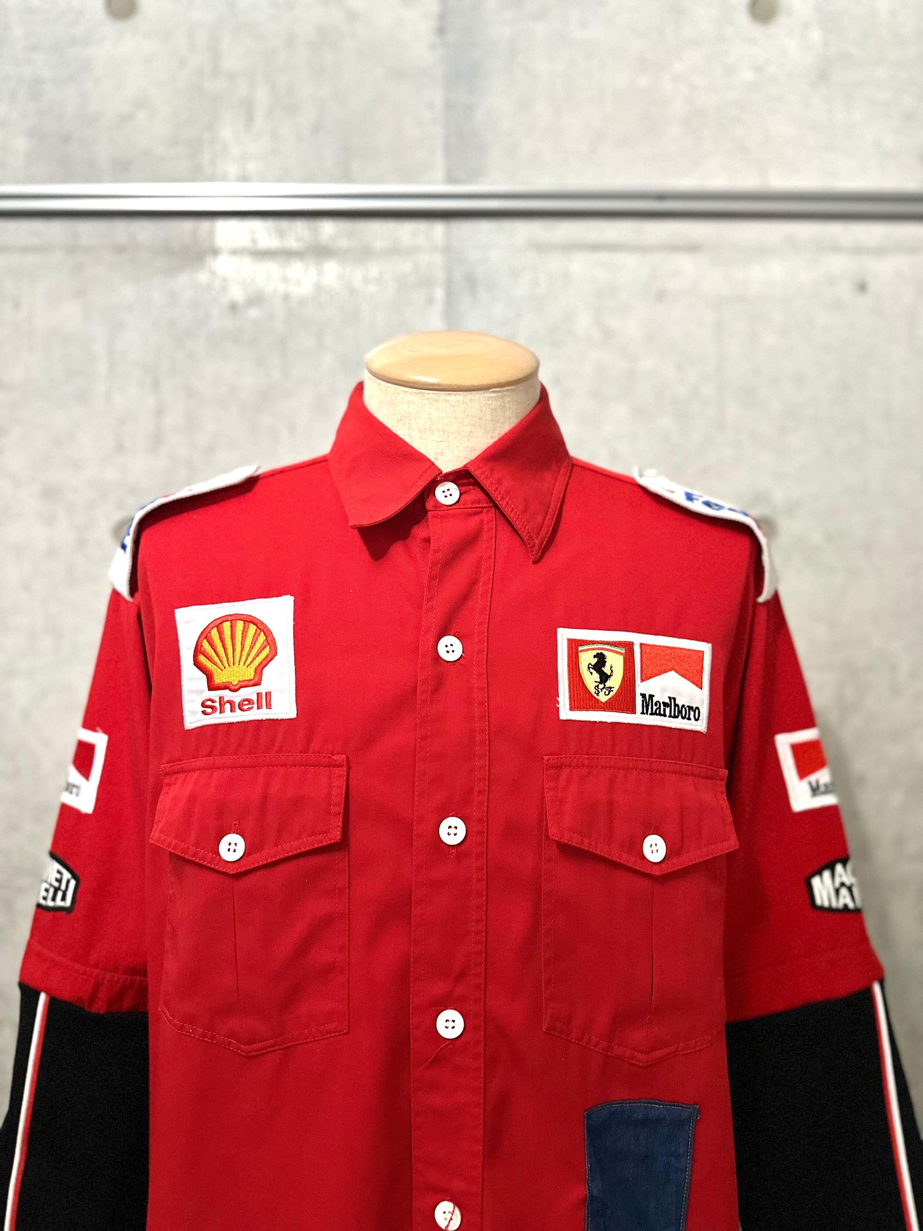 某企業のロゴの刺繍がいっぱいなシャツ。