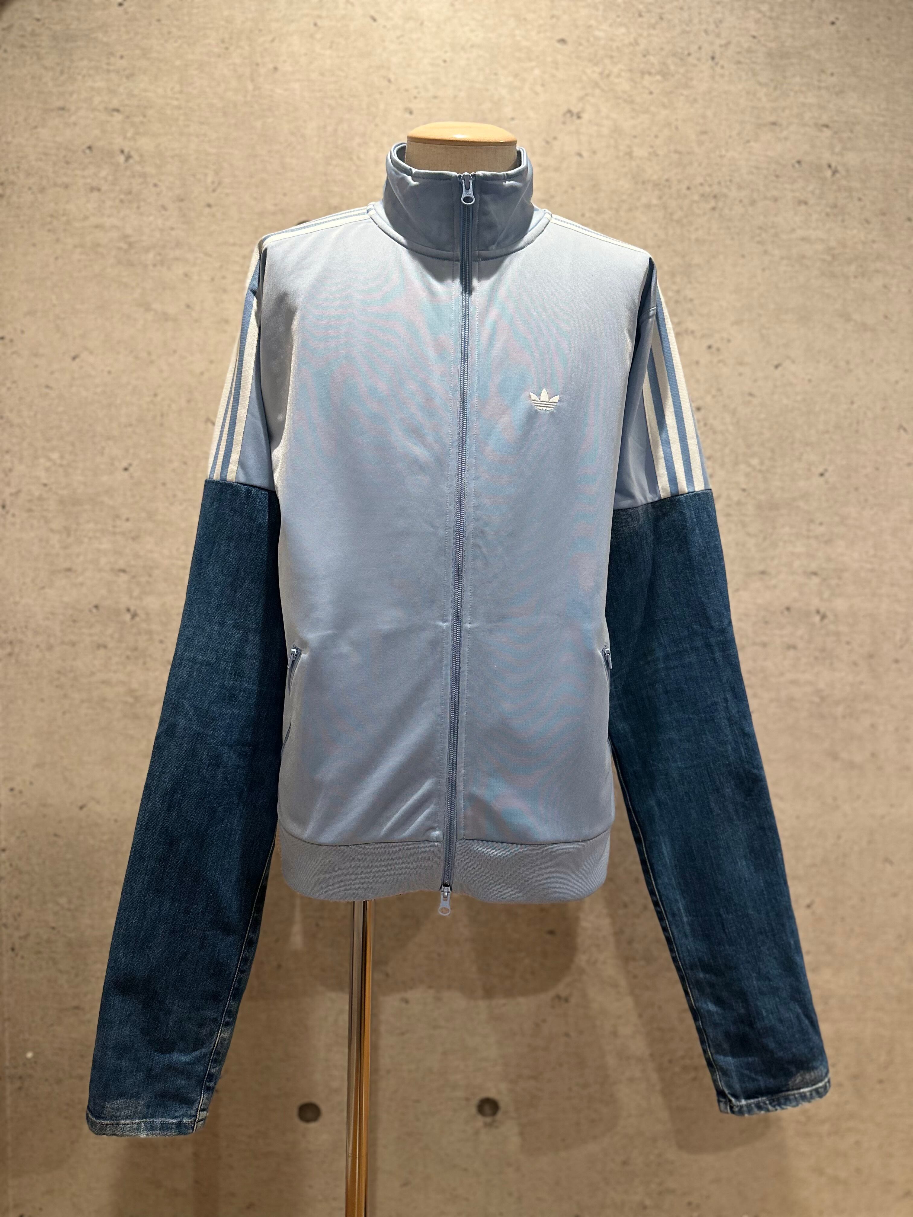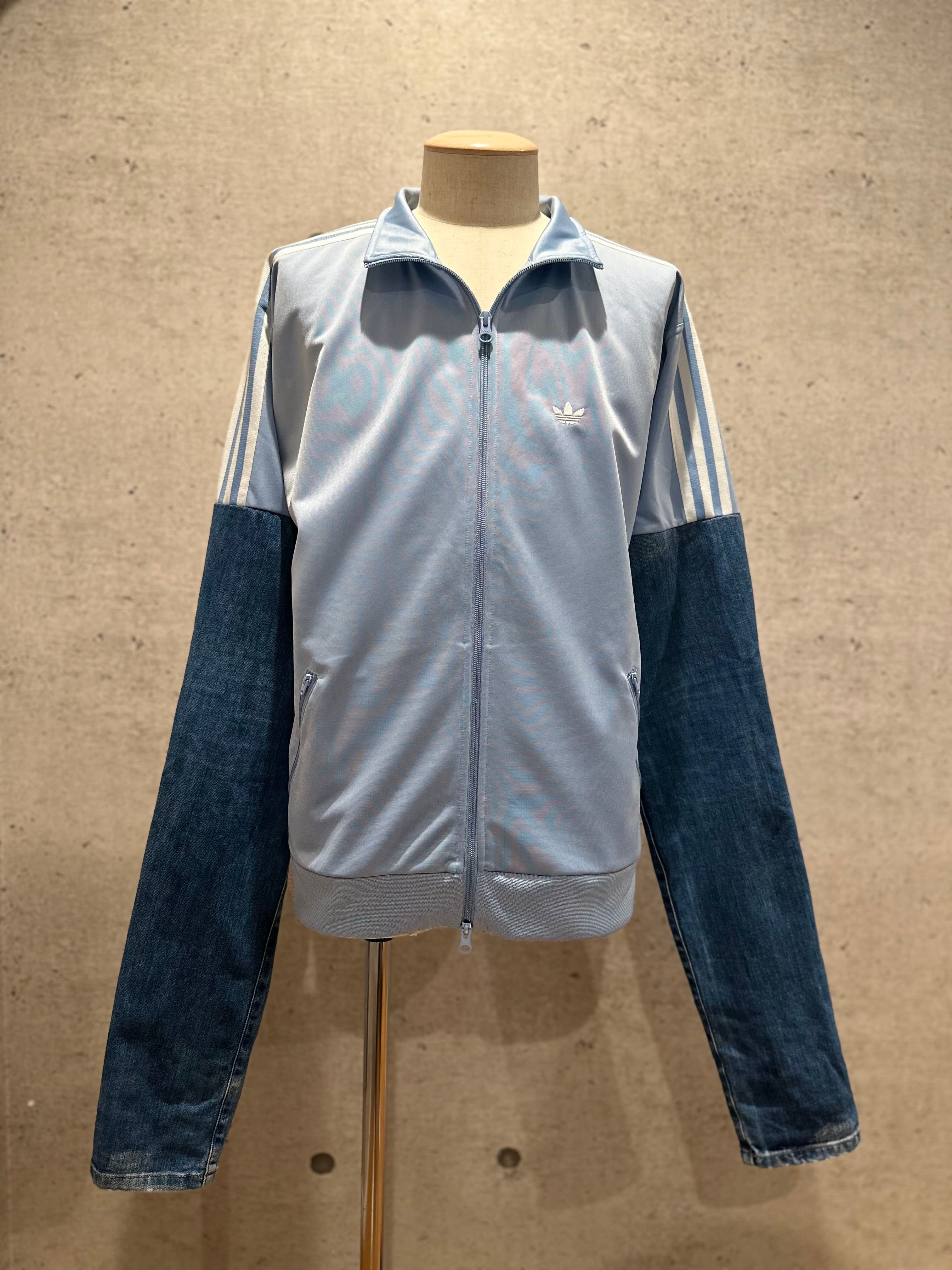 adidasとsnidelのコラボトラックジャケットにdiesel black goldのデニムをドッキングしたリメイクジャージ。