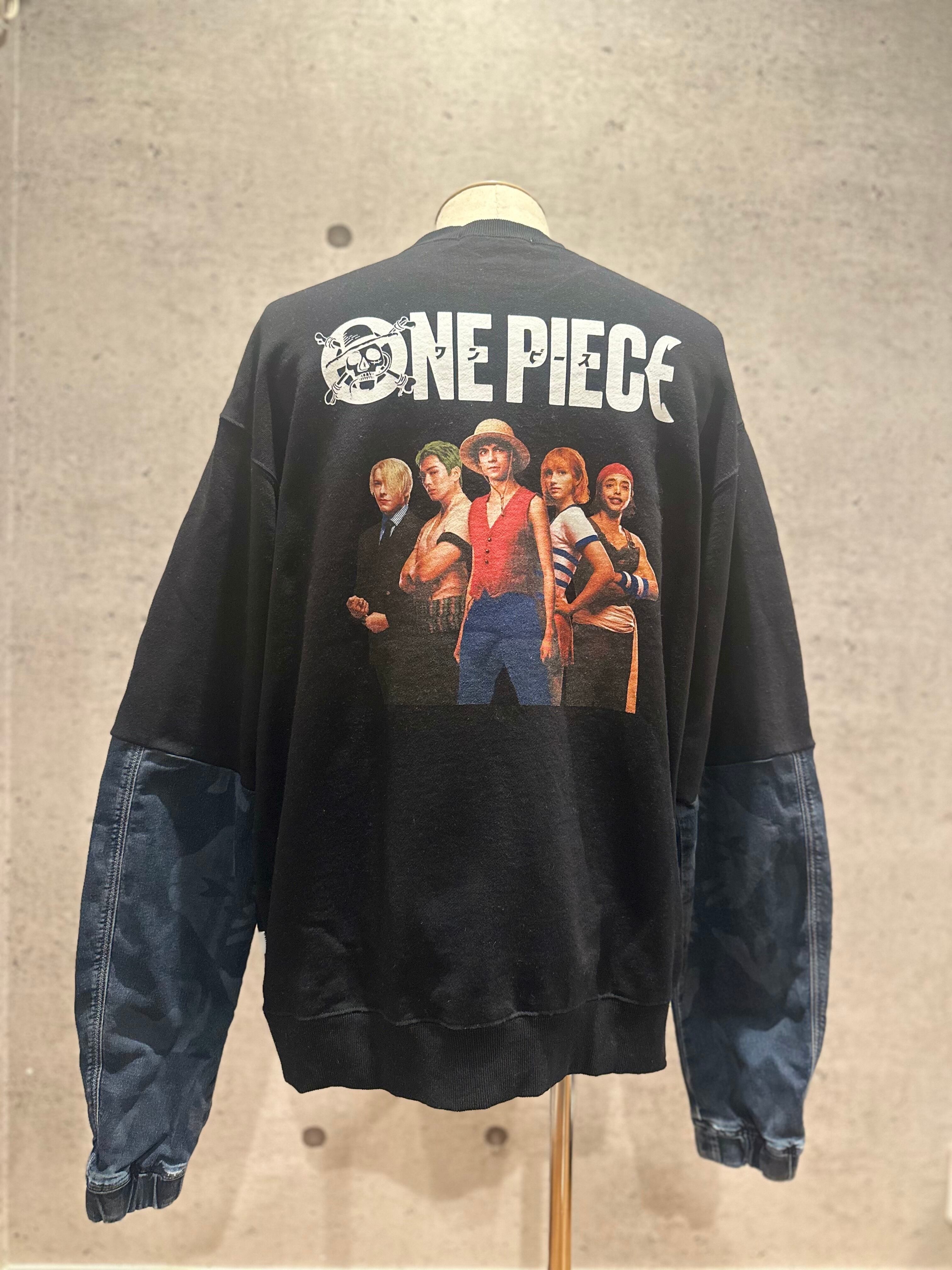 atomosと実写版ONE PIECEがコラボしたトレーナーにdieselのデニムジャケットをドッキングしたアイテム。