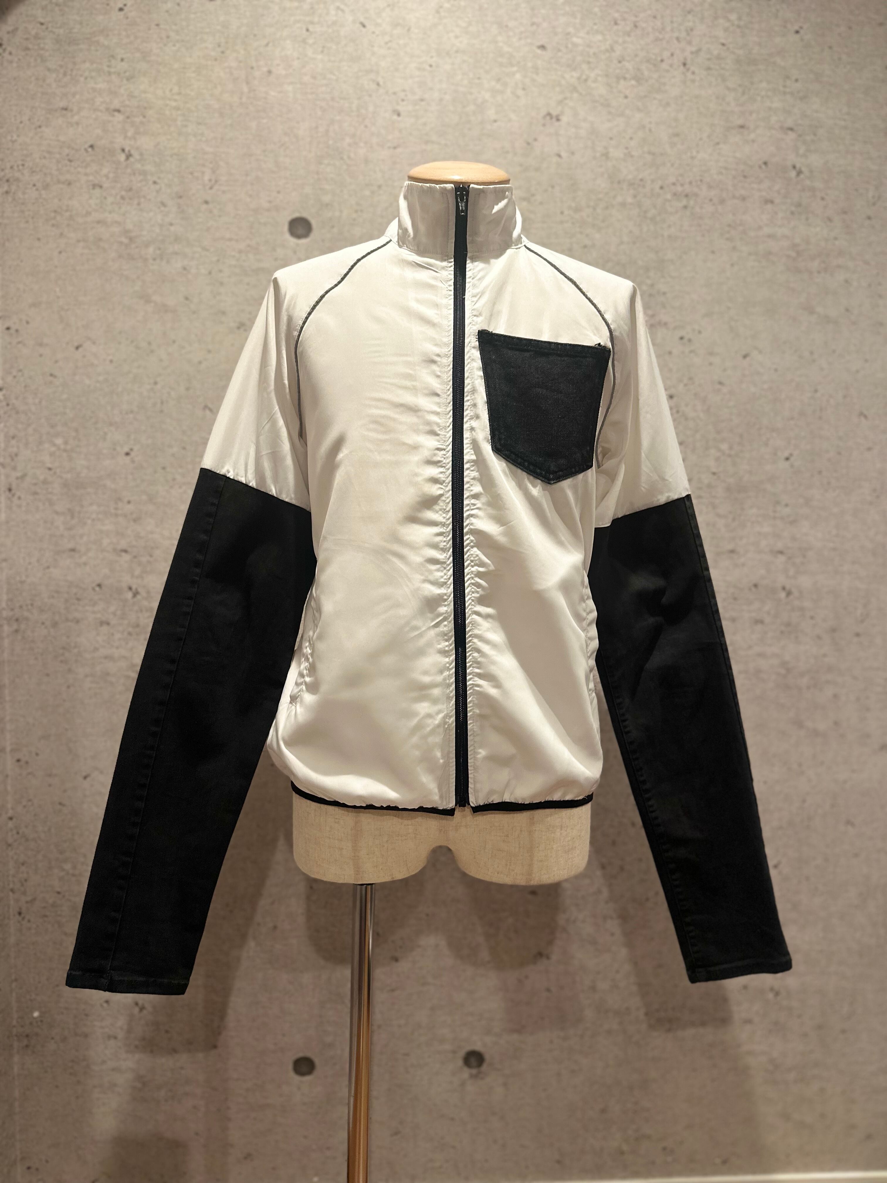 とある企業のナイロンジャケットにスキナーパンツをドッキングしたリメイクジャケット。