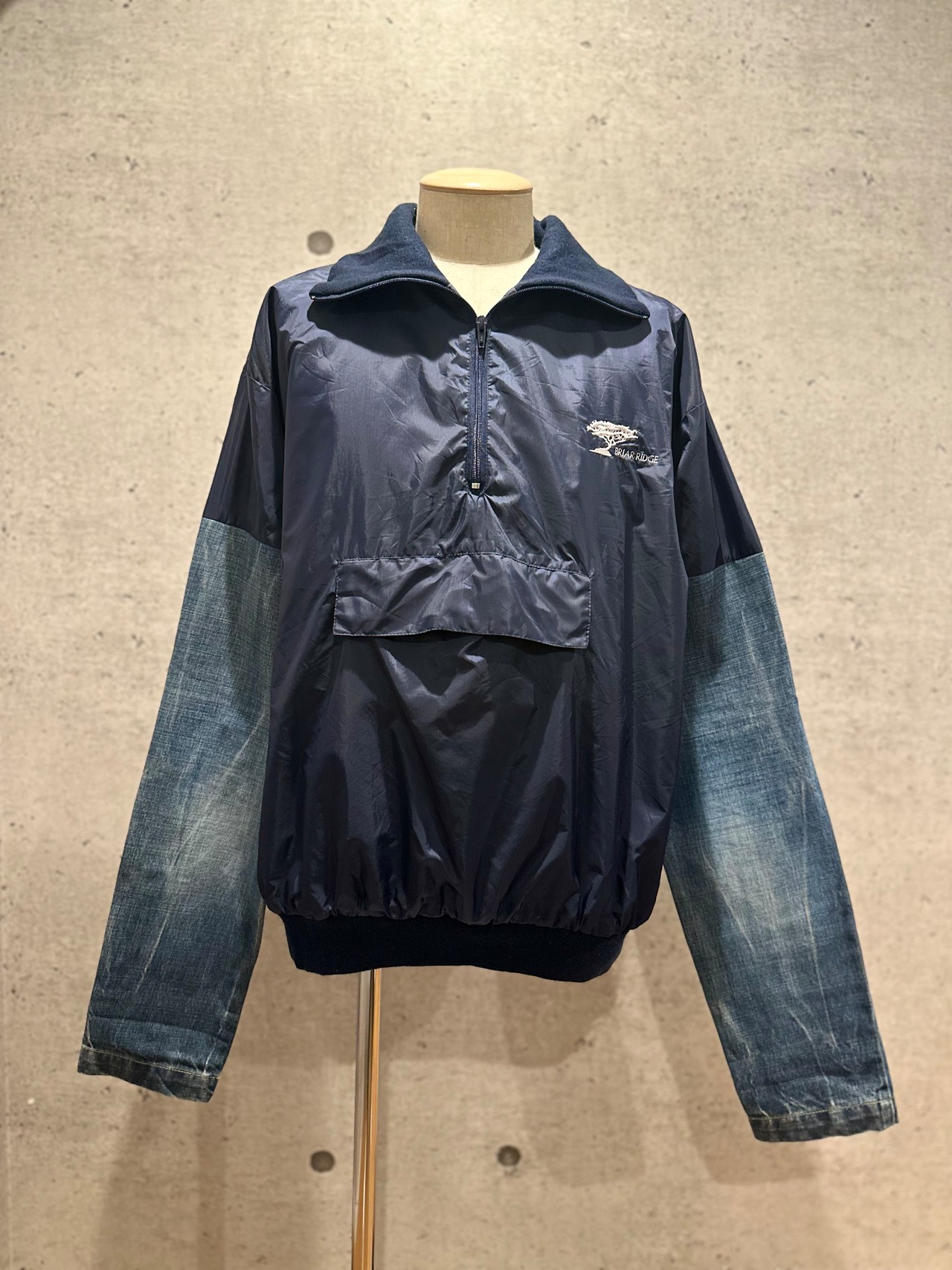 ハーフジップのナイロンジャケットにDouble Standardのデニムパンツをドッキングしたリメイクジャケット。